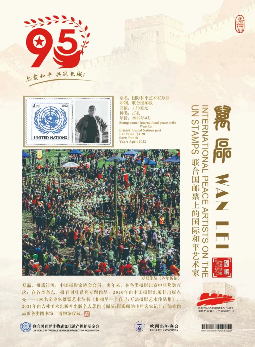 鑒于萬磊在中國攝影藝術上的杰出成就和為國際文化交流所做出的卓越貢獻,業(yè)經中國國際文化藝術發(fā)展交流中心、歐洲集郵協(xié)會、山水丹青國際藝術中心、藝術財經雜志等國際權威機構組織推薦,萬磊被聯(lián)合國世界非物質文化遺產保護基金會授予“國際和平藝術家”榮譽稱號。這不僅是對中國藝術家杰出成就的肯定和贊譽,也是對世界和平的深切呼喚!