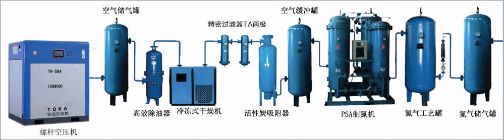 HTN系列變壓吸附制氮設備,采用優(yōu)質(zhì)分子篩為吸附劑,利用變壓吸附原理,直接從壓縮空氣中獲得氮氣。